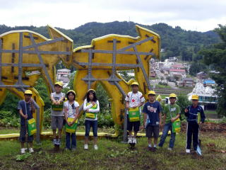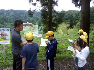 | 巨大な花? | 蒲生の棚田の説明を聞く5年生 |