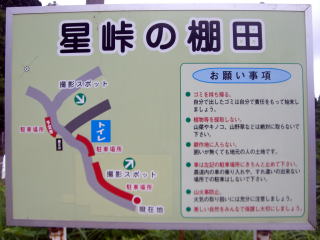 棚田は水との戦いさ。星峠では秋のうちに水を入れ、代かきをするんだ。田がよく壊れるので水もちが悪いんだ。6/18に田植えをした場所もある。観光客は年間1万人くらい来る。多い日には100台くらいの自動車が並ぶこともあるんだ。マナーを守ってほしいね。