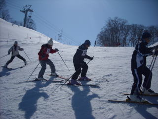 昨年度は、強い吹雪で視界確保が困難なため、午前でスキー教室を切り上げましたが、今年度は雲1つない快晴で気持ちよく滑ることができました。