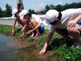 草取りをしながらも稲の観察をしっかりしていて、子ども達からは「稲が少し大きくなったような気がする。」との声が、聞かれました。