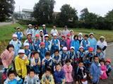 5・6年生が稲を刈り、1〜4年生が刈った稲をプールまで運びました。