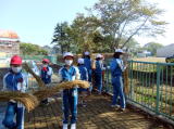 米作りでお世話になっている地域講師に教えていただきながら、脱穀をしました。