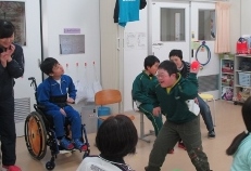 11月27日(金)に十日町市立ふれあいの丘支援学校を訪問し、自己紹介や、「ジャングルぐるぐる」のダンス、「仲間集めゲーム」で交流しました。他校の子どもたちを前に、最初は緊張した様子でした。みんなで一緒に踊ったり、ゲームをしたりして緊張が解け、リラックスした表情で交流を楽みました。