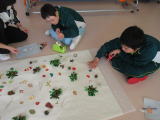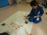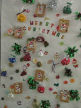 12月15日、17日にプレゼントの形をしたオーナメントを作り、フォトフレームにサンタに扮した自分の写真を入れて、キラキラした飾りと一緒にツリーにしました。飾りをたくさん貼って大きなツリーができました。