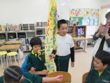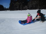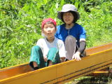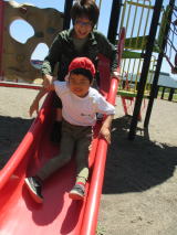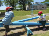 今年もサツマイモの苗を植えに、クラインガルテンに行ってきました。毎年お世話になっている地域の方から植え方を教えていただきながら、無事に植えることができました。今年は、苗の間隔を測り穴を開ける仕事も子どもたちが行いました。少しずつレベルアップしています。 苗を植えたあとはお楽しみのダンボール滑り!友だちを誘って一緒に滑ったり、一人で立ち乗りで滑ったり、思い思いに楽しみました。最後はバラ園の鑑賞もしました。気持ちのよい青空のもと、満開のバラの香りを楽しみながら散策してきました。地域の方からイチゴを差し入れもいただき、みんな大喜び!地域の方とのふれあいも満喫できました。 7月には草取り、10月には収穫を予定しています。おいしいサツマイモができるか楽しみです!