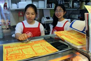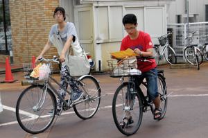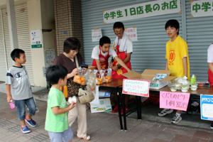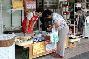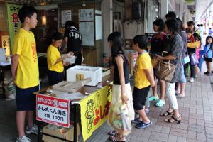 ![]() じっくりと掘り出し物を探します | ![]() 中学生1日店長のお店も繁盛していました |