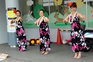 ![]() 中学生によるあきんど体験では、各店舗のお手伝いもしました | ![]() 涼しげなフラダンスショーが披露されました |