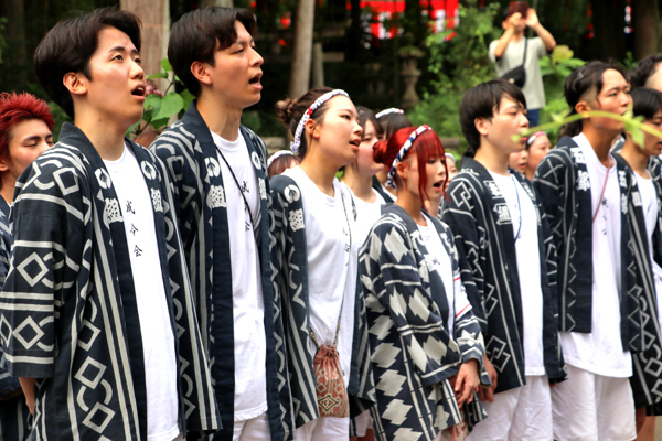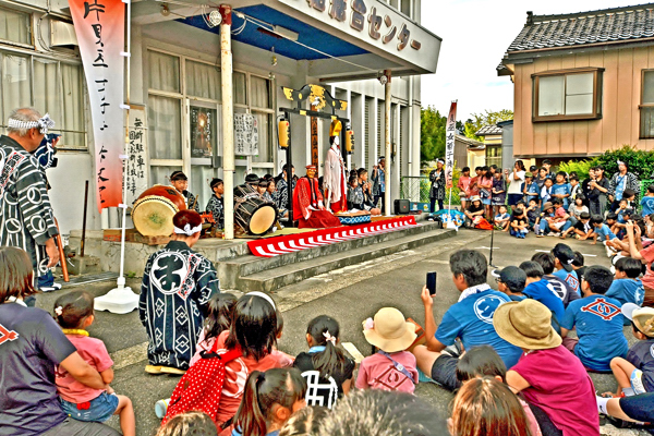 地元の子どもたちにより片貝巫女爺が披露されました |