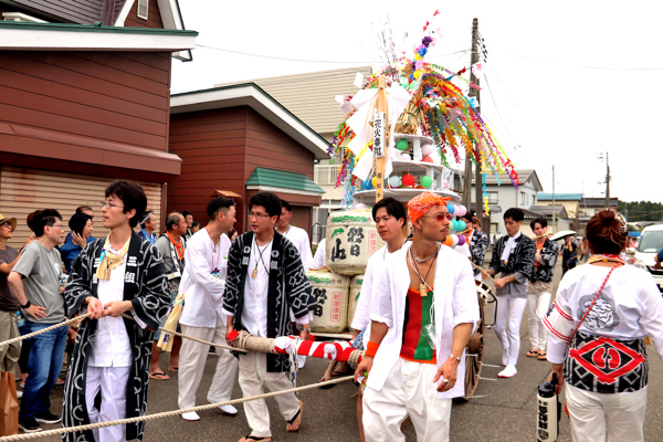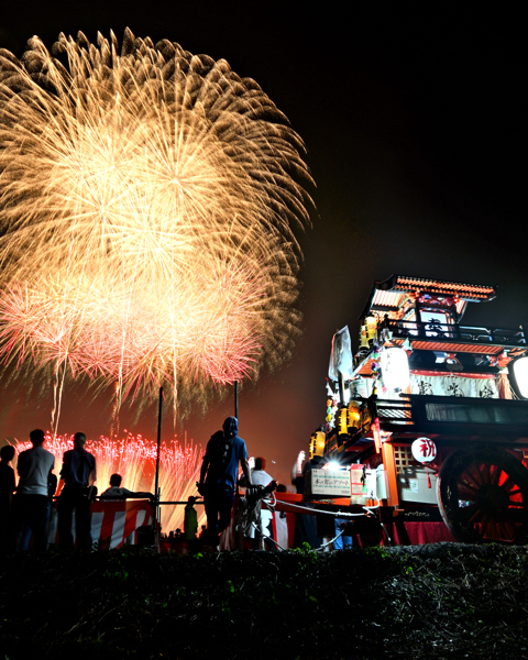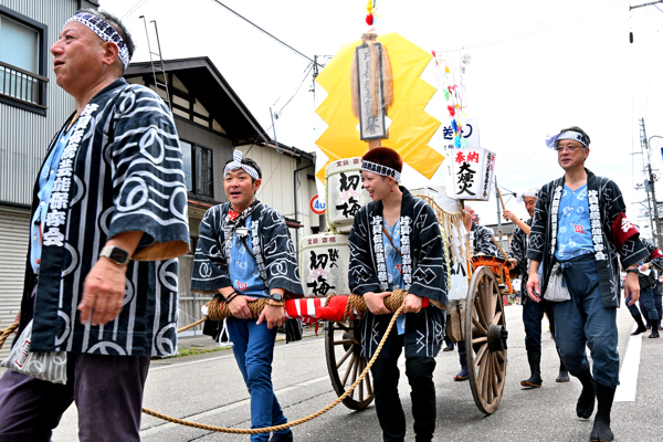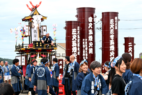 前日祭として片貝町民による伝統祭り屋台の曳き廻しが行われました |