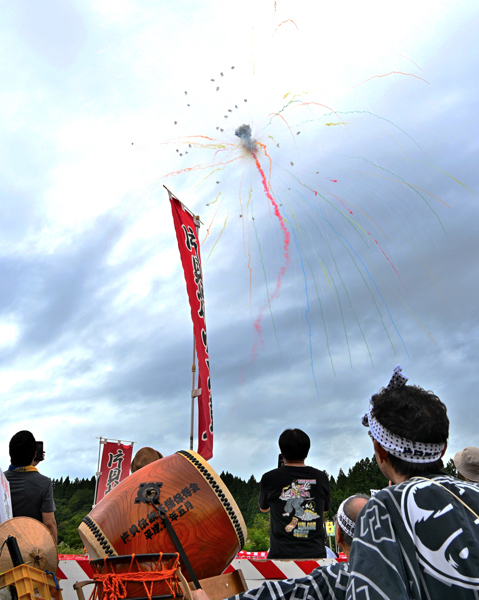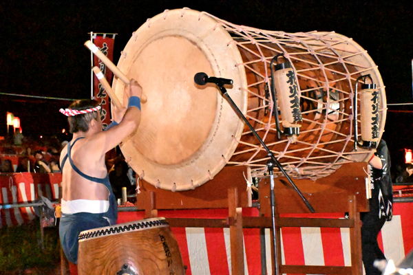 奉納大煙火の前に披露された名物「奉納花火太鼓」 |