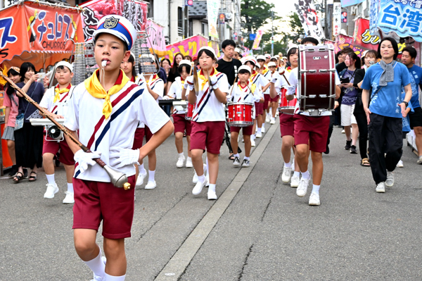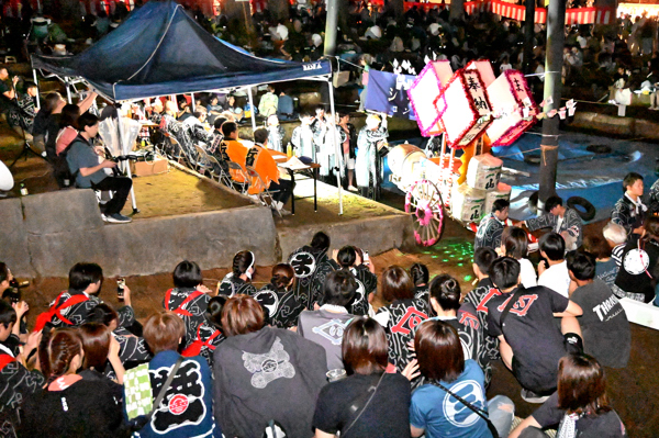 町内それぞれの組も玉送りとお囃子でお祭りを盛り上げます |