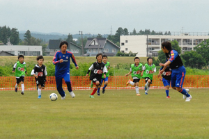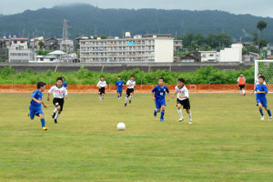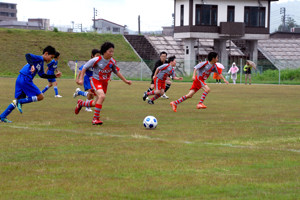 ![]() 大会では、優勝目指して必死にゴールを狙っていました | ![]() 整備されたばかりの芝生の上で懸命にボールを追いかけていました |