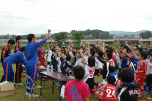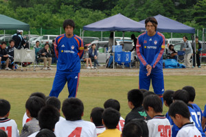 試合終了後、アルビレックス新潟に所属する三門選手と村上選手が登場すると、子どもたちからは歓声があがりました。