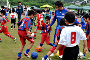 次に選手からのパスに合わせて実際にシュートをする練習やミニゲームが行われ、緊張のほぐれた子どもたちは活き活きとボールを追いかけていました。