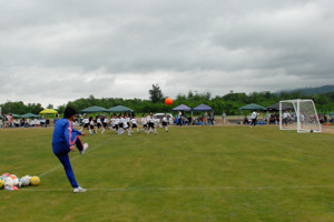 教室に先立ちサッカー大会が開催され、整備されたばかりの芝生のグラウンドの上で6チームが熱戦を繰り広げました。