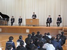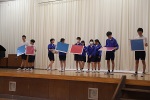 1学期が終了しました。終業式では、代表生徒がこれまでの振り返りと夏休み等の抱負を述べてくれました。「自学を頑張りたい」「部活動において、体がぶれないようなフォームを作れるよう頑張りたい」などの発表がありました。充実した夏休みになることを期待しています。