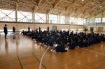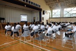 市の事業の1つとして、当校を会場に非核平和講演会が行われました。実際に被爆を体験された方が高齢となってきているため、伝承者を育成しています。今回、広島からその伝承者の方が来てくださいました。「平和とは愛の心である。自分のできることから行動することが平和への一歩である」とのお話をいただきました。代表生徒からは、「改めて原爆の恐ろしさを感じた。生きている人が幽霊に見える。想像もしたくないくらい怖いです。愛の心を持って人と接したいし、自分もみんなも幸せになる行動をとることが平和を築くことにつながると感じました」とあいさつを述べてくれました。