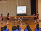 2年間お世話になったALTがこのたび、アメリカに戻ることになり離任式を行いました。2年間の子どもたちとの思い出を語るとともに、英語が好きな人、苦手な人にそれぞれにアドバイスをおくってくださいました。「言語を身につけることは難しい。言語の学びには終わりがない。あきらめないで学び、世界の人とつながって欲しい。スポーツ、音楽、経済、文化・・・いろんなつながりがある。自分の未来のために、まず楽しむことからスタートして欲しい」などとお話くださいました。