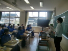 市内外の高等学校から先生方に来校いただき、各学校の特徴についてリーフレットや画像をもとに、丁寧に説明をいただきました。参加した生徒は一年後の自分の学校生活を思い描きながら、真剣に話を聞いていた様子でした。