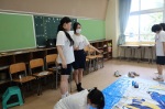 夏季休業中でもリーダーは東雲祭の準備で学校に登校しています。応援の部は歌、振り付け、エールをどうするか。デザイン部門は、御横断幕のデザイン決めと制作に係りました。空調が効いた部屋でも子どもたちの熱気が伝わってきます。
