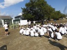 いよいよ、東雲祭の全校練習がこの日スタートしました。1時間目の涼しい時間帯でしたが、暑さを避けて日陰での活動でした。今後も、天候を見て開催場所や時間を柔軟に変更していきます。
