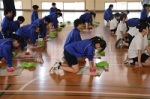 本日は昨晩の降雨でグラウンドコンディションが悪く、屋内で東雲祭の練習をしました。競技担当の生徒から、競技の方法についての説明があったのち、半分程度のスピートで実際に競技をやってみました。別室では応援合戦での体形の確認をしていました。