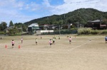 季節は秋の気配を深め、今日は運動するには大変適した天気です。3年生は体育の授業で、男子はサッカー、女子は野球を行いました。特に、サッカーは昼休みに遊びで楽しんでいる生徒が多く、生徒には人気です。叫び声や歓声が教務室にも聞こえるるくらいに熱中していました。