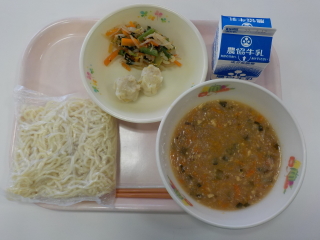 ごはん、ケチャップしゅうまい、中華ごまサラダ、中華スープ、牛乳