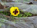 暖かい日が続き、雪解けも進んできました。玄関の花壇では、溶けた雪の間から、パンジーの花が顔を出しています。