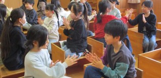 今日は、朝から5年生のオープンスペースからきれいな歌声が聞こえてきました。