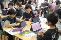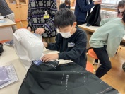 5年生の家庭科の学習では、エプロン作りを行っています。ミシンを使い、一人ひとりが丁寧に作業をしています。初めは難しそうにミシンの操作をしていましたが、慣れてくると上手に使うことができるようになってきました。どんなエプロンができあがるのか、とても楽しみです。
