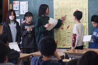 各クラスが小千谷縮、牛の角突き、錦鯉の3グループに分かれて、工夫を凝らした発表やまとめをしました。