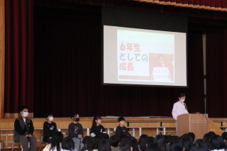 来年度新しく加わる5年生を迎えて、どんな委員会で、どう盛り上げていってほしいかなど委員長を中心に6年生が伝えていました。