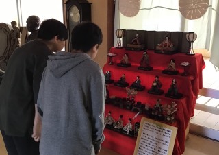 このおひな様は、80年の歴史があります。小千谷小学校を卒業された皆さんから昭和6年に小千谷小学校に贈られたものです。子どもたちは、現代のおひな様と顔立ちや髪型が違うことに興味をもち、熱心に見入っていました。これからも末永く大切にしていきたいです。