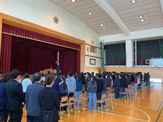 卒業式までお休みを入れてあと8日、授業日はあと5日となりました。今日は卒業式予行練習をしました。本番と同じような動きで行い、緊張感のある中、練習を行いました。全校でよい卒業式にしようと気持ちが向いています。当日が楽しみです。
