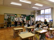 3・4年生の学習発表会のテーマは「Let`s think!考えよう福祉のこと」です。今年は、総合的な学習の時間に福祉について学習しています。赤い羽根募金や高齢者体験等を通して、感じたこと・考えたことをクイズや劇にして発表します。午後には、外に出てグラウンドに響くほどの声で台詞の練習をしていました。当日、元気に発表する3・4年生の姿にご期待ください!