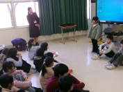 今日は文科省の担当の方々が来校し、朝のソーシャルスキルの様子を撮影しました。子どもたちはいつもの通り、「あいづちを入れながら聴く」練習に取り組みました。目を見て、頷きながら、等のスキル練習の成果もあり、笑顔で聴いていることを伝えています。TVカメラクルーがいても、過度の緊張をしないのは、防災教育で撮影された経験がいきていたようです。今回の取材がどのような形でいかされるのか、とても楽しみです。