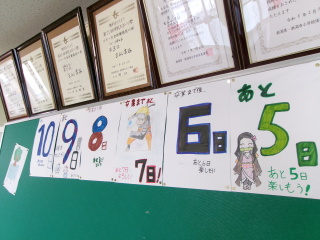 玄関には、6年生手作りの卒業式までのカウントダウンカレンダーが設置されています。「あと5日間、楽しもう!」のメッセージが添えられています。楽しくもあり、寂しくもあり。どんな5日間になるでしょうね。
